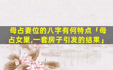 "母 ☘ "占妻位是 🐈 一种比较极端的说法,实际 🪴 情况可能并不完全符合。