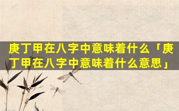 庚 🌹 丁甲在 🍀 八字中的组 🐵 合: