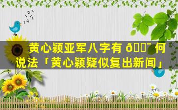 黄心颖 🐅 疑似复出新 🌵 闻 🦟