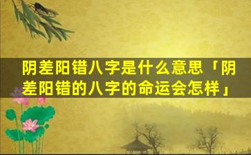 阴差阳错 🐵 在命理学中的 💐 解释: