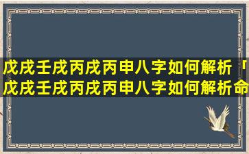 戊戌壬戌丙戌 🦢 丙申 🐼 八字 🦋 解析