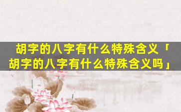 “胡”字在八字中的特殊 🌿 含 🐬 义: