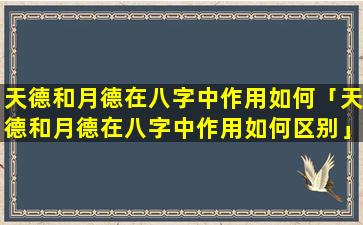 在八字命理学中,天,德和月德都是吉星但其影响力有 🐎 所不同: