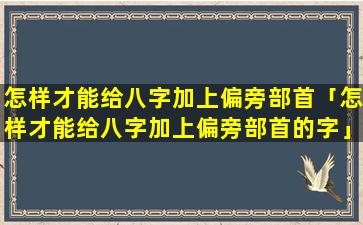 无法直接给八字加上偏旁部首八字。是生辰八字的简称,由年、月、日、时,四。个部,分。组成每个部分有两个字来表示天干和地支而偏旁部首是汉字的组成部分通常用 🐒 在汉字中