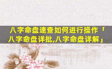 八 🌲 字命盘速查 🌺 操作步 🐎 骤: