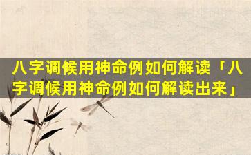 八 🐳 字调 🐒 候用神命例 🦄 解读步骤:
