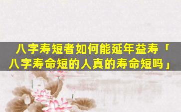 八字寿 🌷 短者 🐬 的延寿方法 🌿 :