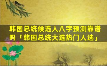 八字预测是基于传统中国占星术的一种占卜方法,其原理和准确性尚未得到科学 🐒 证实。因,此,对于。韩国总统候选人的八字预测是否靠谱没有客观科学的依据可以判断
