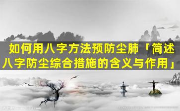 八字防 🦆 尘综合措施是指针对粉尘作业的八项主要防尘措 🦟 施,为从源头、输、送、集尘排放等各个环节全面控制粉尘污染 🍁 所采取的系统性措施。