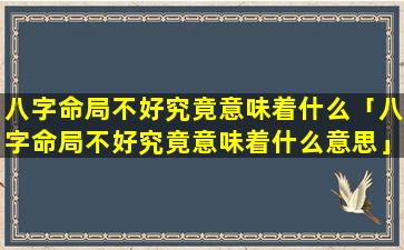 八字命局 🦄 不 🦉 好 🐟 的含义