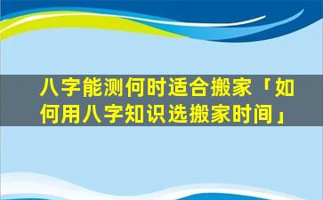如何用八字 🐡 知识选搬家时间