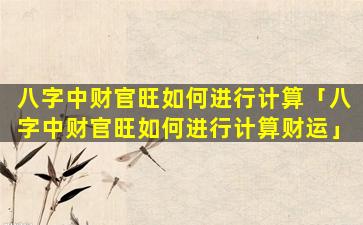 如何计算八字 🍁 中财官 🌺 旺的 🐒 财运