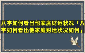 某 🐦 些特 🌼 定的八字组合格局对家庭财运也有影响: