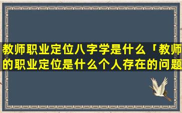 教师职业定位八字学,也,称,为教师八字 🌻 定位学是一种通 🐛 过对教师个人的出生八字进行分析 🦁 来确定其职业定位和发展方向的学问。