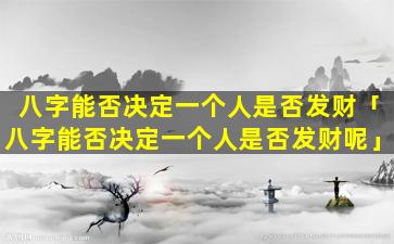 八字是中国传统命理学中用来预测一个人的命运和运势的一种方法。虽然八字理论认为可 🌿 以通过一个人 🌸 的出生时间来推断其一生的整体运势,但。它并不认为八字可以决定一 🐵 个人是否发财