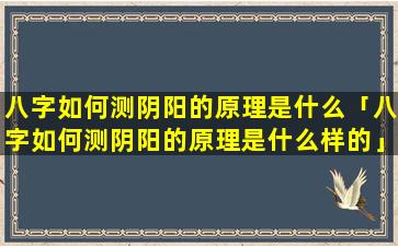 八 🦋 字 🐶 测阴 🐱 阳的原理