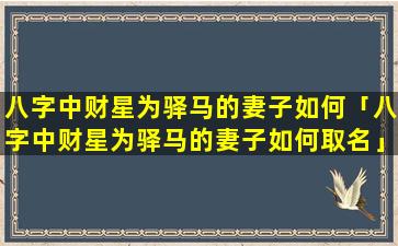 八字中财星 🌿 为驿马的 🦋 妻子命理分 🐼 析: