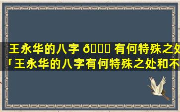 王永华的八字具有 🦉 以 🐎 下特殊之处: