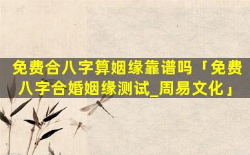 免 🌳 费合八字算姻 🕷 缘的可靠 🕊 性
