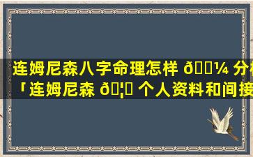 总体来看,连姆·尼,森,八字命格为正官格五行水木旺五行土火弱。性,格,正。直,稳,重责任感强但有时过于拘泥 🌾 运势总体平稳 💐 中晚年运势较好事业、财运、家。庭都比较 🦟 圆满