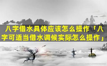 八字中“适当 🐼 借水调候”的操 🌿 作 🌸 方法如下: