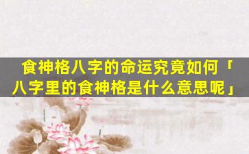 食神格命局是否算 🦅 得上等命,需要根据命局的具体情 🐞 况来判断。以下是一些影响食神格命局吉凶的因素: