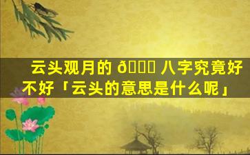 总体评价:云头观月八字属于中上八字,优,点 🦁 明显但缺点也需要注意。如,果,能。够克服缺点扬长避 🦅 短则会有不错的发展