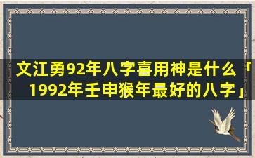 根据“文江勇92年”的信息,无法确 🐠 定八字喜用神。需,要。提供完整的八字出生日 🐕 期和时间才能准确分析八字格局 🌾 和喜用神
