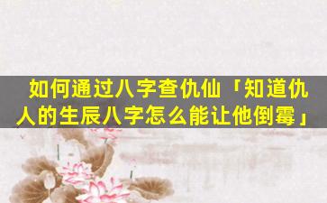 如何 🦢 通过 🦄 八 🐟 字查仇仙