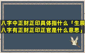 正财 💮 和正印在八字中的具 🦄 体指代: