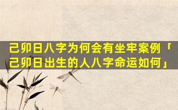 “己卯日”八字是否会导致坐牢案例与个人 🦟 特定八字组合、大运流年等因素有关,并不能一概而论。