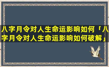 八字月令对人生 🐶 命运的影响 🐼 解释