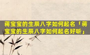 温馨提示:由于生辰八字未提供,以上名字仅为参考。建,议。咨询专业起名人士根据蒋宝 🐅 宝的生辰八字进行更加准确的起名