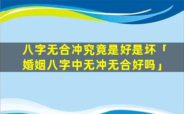 八字合婚是一个复杂的体系,不 🐎 能仅凭“无冲无 🐳 合”这一项就判断婚配吉凶。
