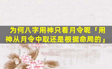这种说法不完全准确。八字用神并非只看月令,而。是综合考虑年月日时四柱的五行生克制 🦆 化关系