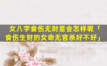 对于食伤生财的女命无官杀的好坏,要视具体情 🐟 况而定:
