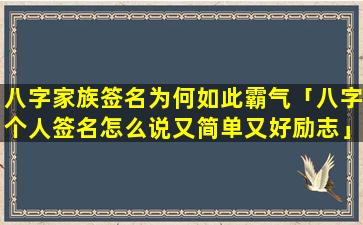 “八 🌼 字家族签名”通常是指由八个汉字组成的个性签名,之,所以霸气可能是由于以下原因 🌾 :
