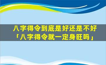 八字得令是指天干地支五行与所属季节相符 💮 ,但八字得令不 🐼 等于身旺。