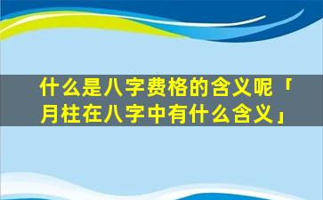 八字费格是 💐 指八字 🦢 中的一种特殊格局。