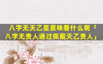 八字 🪴 中 🌷 无天 🐺 乙贵人星意味着: