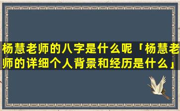 无 🪴 法获得实时 🐝 信息,因此我无法提供杨慧老师的八字信息。