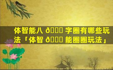 体智 🐺 能圈圈 🐒 玩 🌷 法