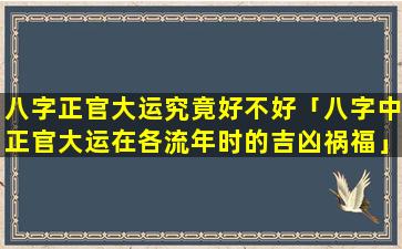 八字正官大运的吉凶不能一概而论,需要结合其人八字结构正官、旺、衰格局组合以及流年配合等因素综合 🦢 判断。