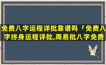 免费八字 🌷 运程详批 🐟 的可靠性