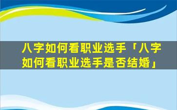 八字中没有直接看职业 🌹 选手是否结婚的依 🦍 据 🐼 。