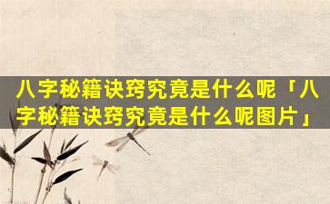 八 🌻 字秘诀诀窍:四柱八字 🦟 预测图
