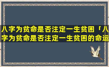 因此,八字为“贫命”并不代表注定一 🌷 生贫困命。理,只。是一个参考最终成败取决于个人的努力和应对人生的态度