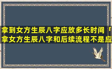 这种说法在现代科学中 🐳 没有根据。生辰八字只是传统的一种推算吉凶祸福的方法没有科学 🌷 ,依据。因,此。拿到女方生辰 🦅 八字没有必要存放任何时间