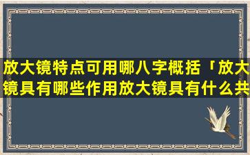 检查细节:放大镜可 🌻 以放大物体上的微小细节 🐋 以,便更仔细地检 🕸 查。