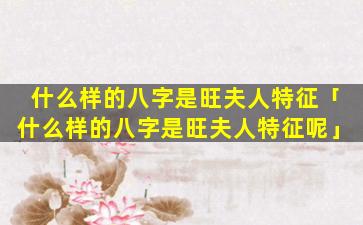 旺夫 🐵 八字 🐱 特征 🐘 :